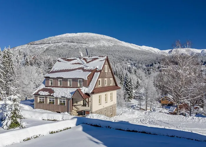 Minerva Hotel met 6 kamers ligt in Špindlerŭv Mlýn op zo'n 15 minuten wandelen van het waterpark Špindlerův Mlýn en biedt een uitzicht op de berg. Dit pension verleent Wi-Fi in de hele accommodatie.